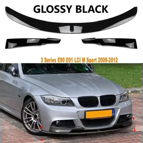 M Tech M Sports M Performance Front Bumper Side Lip Spoiler Skirts Splitter Zst-375+zst-450 Glossy Black CC-3982 Compatible With BMW 3 Series E90 LCI 2008-2012