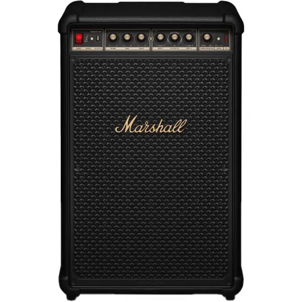 Fill every corner of your party with music when playing, singing, or streaming through the Bromley 750 Party Speaker from Marshall. True stereophonic 360° sound surrounds your guests from eight different drivers that provide up to 442W of total audio power. The Bromley 750 delivers music and vibes, with Marshall's signature amplifier-style body, golden analog control knobs, and 70 integrated stage-inspired lights. The rugged design can handle dirt and splashes when used outdoors, and can be moved around easily with built-in handles and wheels. Whether creating or streaming music, the Bromley 750 can last all night with 40+ hours of playback from its replaceable battery.