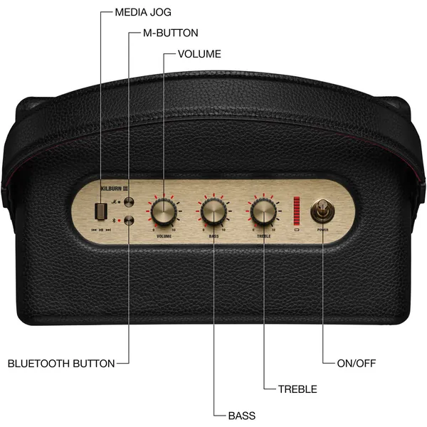 Turning heads all these decades later, the Kilburn III Portable Bluetooth Speaker from Marshall is another example of how Marshall is continuing their legacy of timeless design and powerful sound. With the Kilburn III, you get portable convenience and a speaker that can handle being taken outside, with a durable water- and dust-resistant construction. You and your friends can put the Kilburn III anywhere, as its 360° true stereophonic sound can be heard clearly from any direction. It pumps out up to 50W of audio power that can be played for days with over 50 hours of playback time. Thanks to Dynamic Loudness, that streaming Bluetooth music will sound great at any volume, and with Auracast, you can share it with any compatible device that's nearby.