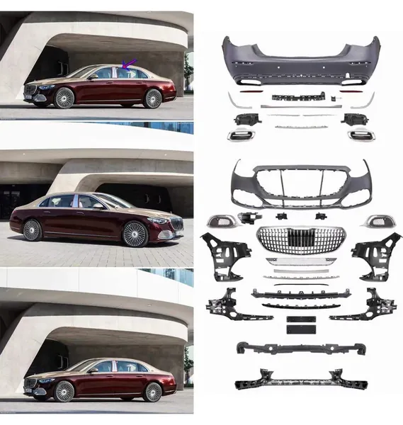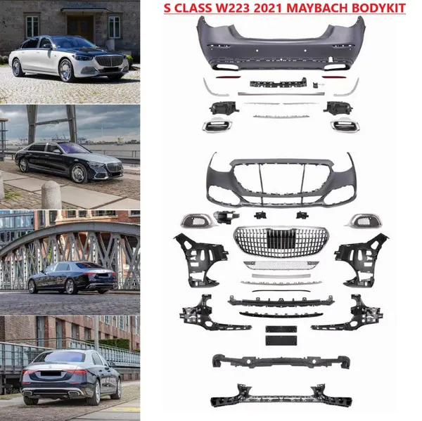 COMPATIBLE WITH MERCEDES BENZ S CLASS W223 2021-2025 CAR UPGRADE TO MAYBACH MHB BUMPER BODYKIT FRONT AFTER LIP DIFFUSER EXHAUST TIPS FOG GRIL COVER GRILL