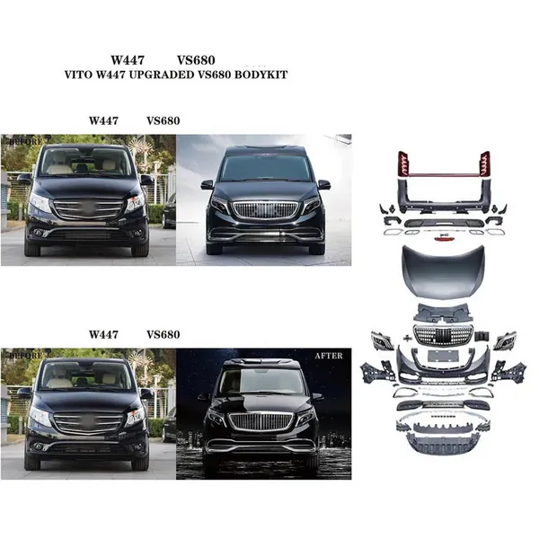 COMPATIBLE WITH MERCEDES BENZ V CLASS VITO W447 2016-2021 TO W447 LCI 2022 MAYBACH S680 UPGRADE FACELIFT CONVERSION BODYKIT BUMPER HOOD HEADLIGHT TAILLIGHT