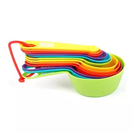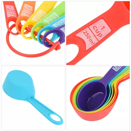 Safe Material & Easy to Use: Plastic Measuring Cups and Measuring Spoons Multicolour Set is made of 100% Food Grade PP Material, durable and lightweight, with clearly marking in standard measuring sizes on the cups and spoons. No more guesswork, convenience home kitchen gadget tool for cooking and baking.