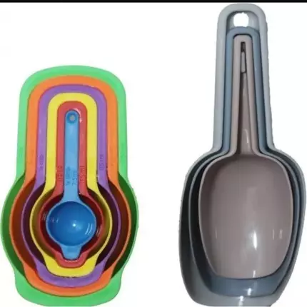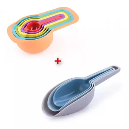 Measuring cups and spoons: This set of measuring tools consists of 6 measuring spoons & 3 scoops. Could be used for cooking, baking, and measuring coffee, sugar, salt, milk, spices, ingredients, etc.