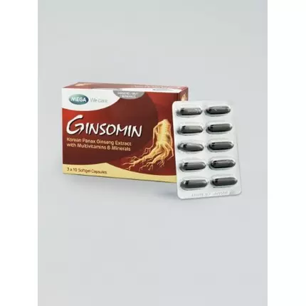 - GINSOMIN is a unique formulation that combines Korean panax ginseng with a broad set of vitamins and minerals. The ginseng in GINSOMIN boosts immunity and makes the body resilient to stress and fatigue. This effect is amplified and supported by vitamins and minerals found in GINSOMIN which help promote normal function and repair of the body.