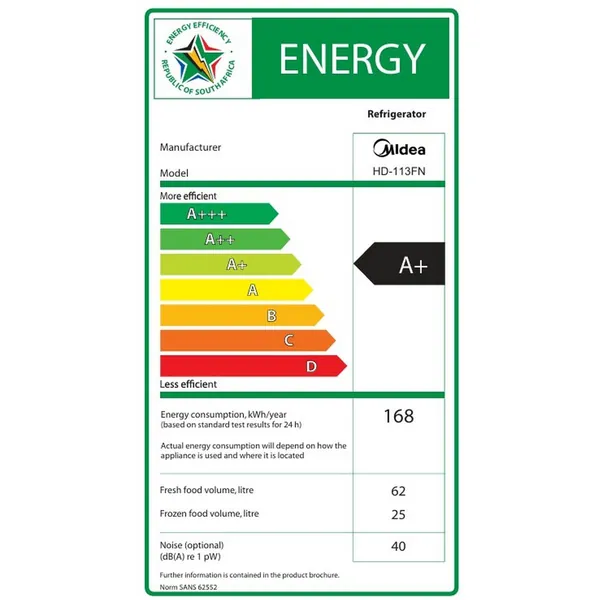 - A+ / 3-Star Energy Rating - Low energy consumption for cost-effective operation.