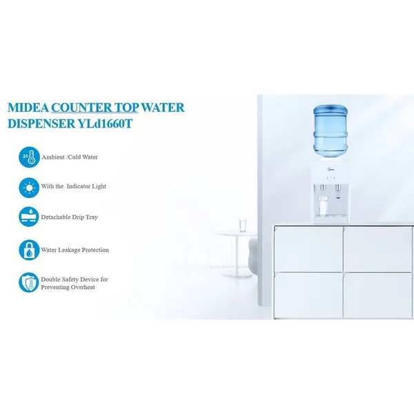 The Midea YLD1660T is a stylish and practical addition to any kitchen, office, or small space, providing reliable cold and ambient water on demand. Its compact countertop design, energy-efficient cooling system, and user-friendly controls make it a standout solution for everyday hydration needs.