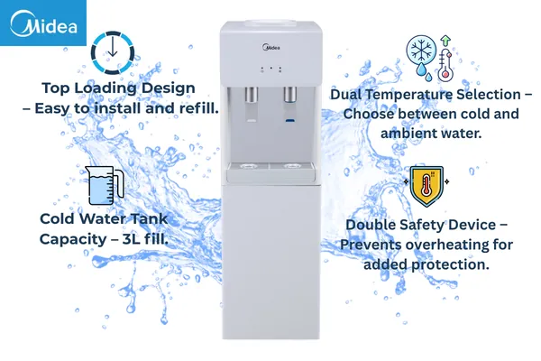 Order the Midea YLD1675S-W Free Standing Water Dispenser now and enjoy clean, crisp water at your preferred temperature - perfect for every moment. Limited stock available!