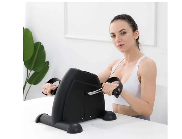 Leg and arm exercises - mini bike pedal exerciser is used for arms and legs cycling exercise at office or home to increase circulation and relieve tension, the pedal motion is smooth and quiet, you can do exercise while you are on phone, watching tv, working, or playing video games.