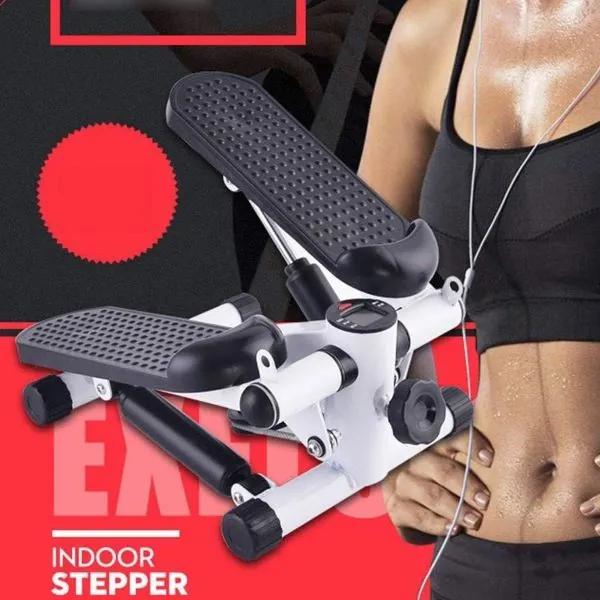 Get fit from the comfort of your own home with this Mini Fitness Swing Stepper with Drawstrings . Practical home trainer, for training your leg, hip, seat and upper body muscles. The stepper has various levels of difficulty and features an integrated training computer that provides you with an effective training plan. Cordless training computer with display of training time, step count per minute, scan and calories burned. Training computer which displays calories burned, time elapsed, number of steps display and automatically displays changes. The adjustable stepper bike can individually adjust each of the range of movement of the twisted stepper. For beginners, it is better to have a small movement amplitude of 40 for hiking or mountaineering. Engineered for durability and safety, This stepper boasts a robust steel construction capable of supporting up to 120 kg. Say goodbye to slips and slides with non-slip edges and pedals. Compact and portable, it's your go-anywhere fitness companion, perfect for home, office, or on-the-go workouts. Embrace versatility and convenience with every step!