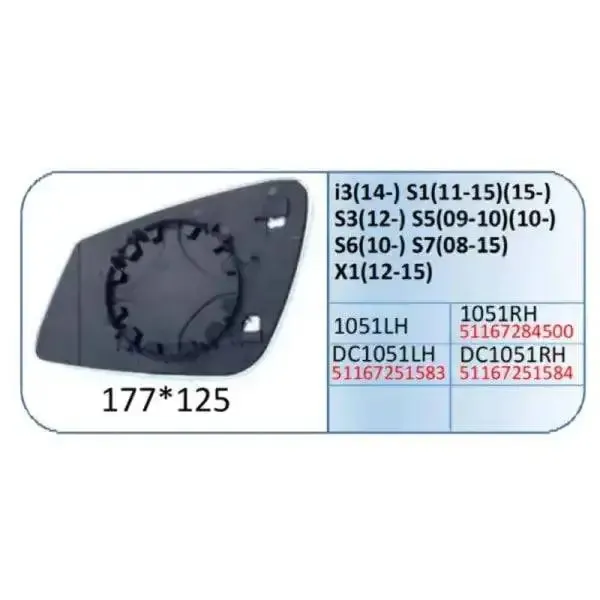 Mirror Glass Right 1051 CC-2198 Compatible With Bmw 1 Series F20 12-14 3 Series F30 F34 12-18 5 Series F10 10-17 6 Series F12 11-16 7 Series F02 09-16