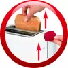Specifications: Power:850 W High-lift yes Stop:yes Defrost:yes Control levels:7 Centres bread automatically for uniform toasting:yes Removable crumb tray:yes Cord Storage:yes Safe to touch walls: yes Indicator light: yes Colours white red buttons