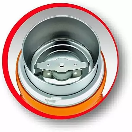 Start your early morning with the great aromas of a freshly ground coffee from this coffee grinder. Light, strong or balanced, you can get your own coffee very easily according to your desires. You can also use the original electric coffee grinder for grinding spices and other nuts. It is the ideal companion for an every day use, from a morning coffee, to to grinding spices for a tasty recipe, the Moulinex grinder will not disappoint you. Easy to use, it grinds all your ingredients in seconds, Stainless steel bowl and blade to preserve the flavor of your ingredients, Grind by simply pressing in order to get the right texture, Easy bowl locking for maximum security, A pressing system in order to directly and quickly grind your ingredients. Compact design and can be easily stored away when not in use. The Grinder is equipped with a double safety system that keeps the appliance to prevent accidents. Offers the power cord can be folded in so that it does not tangle with other appliances. Features For grinding coffee, spices & peeled fruits: Easy to use, it grinds all your ingredients in seconds. Plus, thanks to its modern design and quality finishes, it looks great on your kitchen countertop! Material: Stainless steel bowl and blade to preserve the flavor of your ingredients. Simplicity: Grind by simply pressing in order to get the right texture. Security: Easy bowl locking for maximum security. Consistent rules: To always have regular preparations. Pulse button: A pressing system in order to directly and quickly grind your ingredients. Specifications: Type of blades Stainless steel Bowl capacity 0,050 kg Bowl material Stainless steel Colours: Orange Vintage