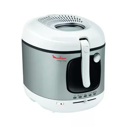 A deep-fryer for the whole family Mega 2 Kg fryer has the biggest capacity among Moulinex fryers. It will enable you to cook 2 Kg of French fries in one cooking. The design is modern: silver and black with a shiny metal button to open the lid. With its removable bowl with non-stick coating, this deep-fryer is easy to clean. All parts - except housing - are dishwasher safe. With Moulinex Mega 2 Kg, get ready to prepare delicious and crispy French fries in just a few minutes. Features: 2 Kg of French fries in one cooking ideal for large families Non-stick removable bowl Easy to clean Highly efficient anti-odour control The charcoal filter is dishwasher safe External basket control When folding up the handle, basket will come up Adjustable thermostat and on/off switch Temperature from 150°C to 190°C. On/off switch with temperature indicator light Viewing window Monitor the cooking Specifications : AM480027 Oil capacity : 3.3L Food capacity : 2Kg Bowl coating : Non-stick coating Lid : Cooking Automatic lid opening : Yes Window : Yes Filter : Carbon Up and down basket : Yes Indicator light : Yes Colour : Silver French fries capacity : 2Kg Removable bowl : Yes On/Off switch : Yes Dishwasher safe - details : Bowl, frying basket, lid and filter Power : 1750-2100W Dimensions (DxWxH) : 360 x 310 x 340 (mm) Weight : 4.255 (KG)
