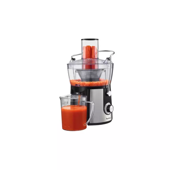 Treat yourself and your loved ones to delicious homemade juice in just seconds, with Juice Express, the easy-to-use centrifugal juicer. Its powerful design ensures fast results for up to 2 L of juice, while a large feeding tube means there's no need to chop or peel your fruits and vegetables in advance. It's also easy to clean, thanks to a streamlined construction. With two perfectly adapted speeds, an easy-to-monitor container and maximum safety features, Juice Express is perfect for the whole family Features : Ultimate power Effortless, homemade juice every day, thanks to 800 W of power. High capacity For up to 2 L of juice. Large feeding tube 75 mm feeding tube means there's no need to chop or peel fruits and vegetables before use Easy to clean Thanks to built-in pulp tank and streamlined construction. Transparent pulp container 1.4 L transparent pulp container to easily monitor the filling level. Dual-speed Two versatile speeds adapt to hard or delicate ingredients. Maximum safety Anti-slip feet ensure stability and large metal security handle prevents accidental usage. Dishwasher-safe Dishwasher-safe removable parts with dedicated cleaning brush included. Technical Details Body material : Plastic / Stainless Steel Cleaning brush : Yes Filter material : Stainless steel Number of filter : 1 Feed tube diameter : 75mm Locking system : Large handle Anti-drip spout : Yes Jug capacity : 0.8L External pulp container : Yes Direct serve : Yes Speed settings : 2 Dishwasher safe - details : Removable parts dishwasher safe Dishwasher safe : Yes Power : 800W Colours : Black / Stainless Steel Pulp container capacity : 1.4L Dimensions (D x W x H) : 29.4 x 24.8 x 42.4 (cm) Weight : 4.3 (Kg)