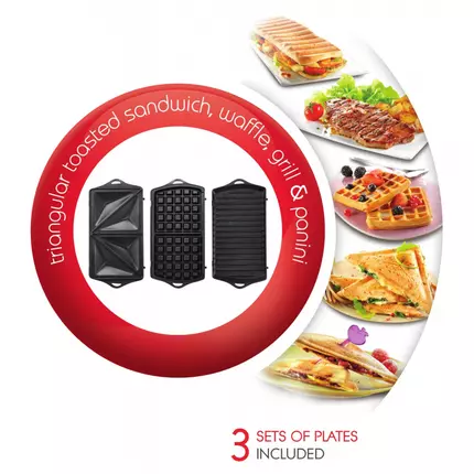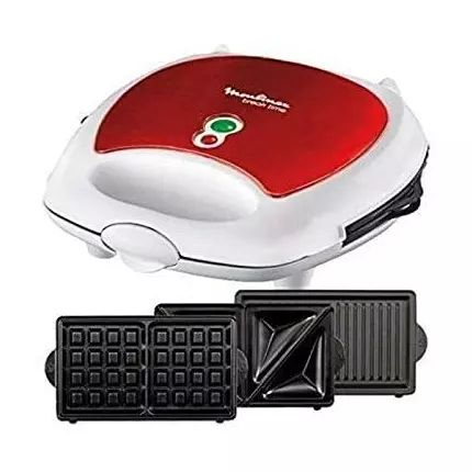 MOULINEX BREAKTIME SANDWICH MAKER SW612 Easy to use and compact design Multifunction Waffles and Sandwich Maker : 3 sets of interchangeable plates for quick and easy meals any time of the day Break Time Sandwich maker, the ideal appliance for your sweet or savory cravings! Start using Break Time now! An appliance with a variety of uses for any time of the day, for easy meals that are quick to prepare! Thanks to its interchangeable sets, you can now use this sandwich maker to toast sandwiches, heat up Panini and also prepare delicious waffles. Break Time is particularly easy to clean thanks to its non-stick plates for daily use. Its vertical design allows you to store the sandwich maker easily and the ruby red color adds a modern touch to your kitchen. Multifunction Why get multiple appliances for your different needs when you can get the beautifully designed Moulinex Sandwich Maker for multiple ones. If you are both a waffle, toasted or grilled sandwiches lover, then you will love having this sandwich maker close by. Sporting 3 sets of plates, you can easily change them and choose which plate you would like to use any time of the day! Easy to Clean The Moulinex Sandwich Maker is designed to make your food more delicious and your life easier. To ensure you will love every aspect of having this sandwich maker, the professionals at Moulinex offer you a set of removable plates which are uber-easy to clean thanks to the non-stick coating they have. If you don’t feel like washing them by hand, you can easily pop them into your dishwasher and let it do the cleaning. Easy to Store If you have a small kitchen or simply hate having things laying around on your kitchen counters, the Moulinex Sandwich Maker is perfect for you. Boasting a vertical design, you can easily and effortlessly put this sandwich maker away when not in use and it won’t take much if any, space. Easy to Use The Moulinex Sandwich Maker is made to help you get the perfect sandwich and waffle at all times. Therefore, this maker will guide you through your sandwich making by having different lights on the top. With an on and off light followed by an end of preheating indicator, you can trust your Moulinex Sandwich Maker to help you get the perfect results at all times. Specifications: Moulinex 3-in-1 Panini, Sandwich & Waffle Maker Brand Moulinex Model Number SW6125 Color Red Item Weight 1.75 Kg Product Dimensions 12 x 6.8 x 11.7 inches Power / Wattage 700 watts Auto Shutoff: No