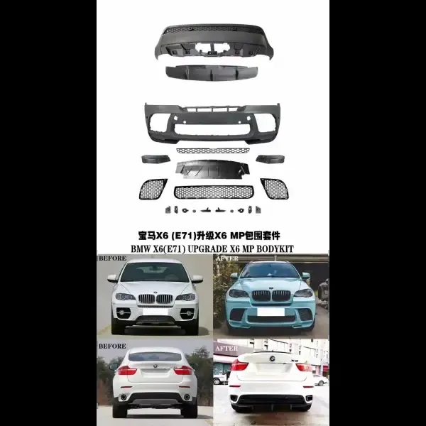 Mp Body Kit X6M Front Bumper Rear Lip Front Grille Spoiler Tail Pipes Body Kits Compatible With BMW X6 E71