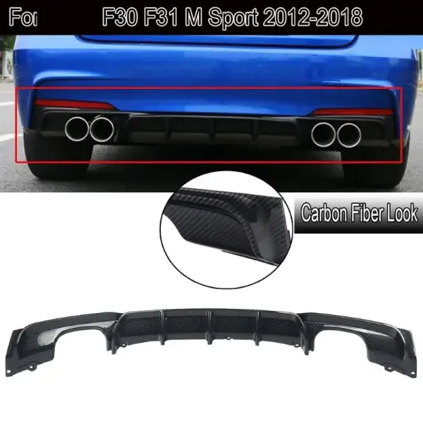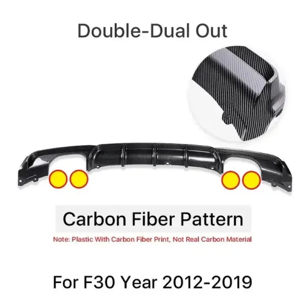 Compatible With Bmw 3 Series F30 2012-2018 Mp Rear After Bumper Diffuser Lip Carbon Fiber Mp 00-00 Dual Side Dual Mp