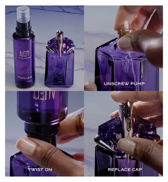 Alien Eau de Parfum Refill bottle, a woody, floral women’s fragrance by Mugler. Mugler is committed to a responsible luxury by offering unique refillable bottles, which can be refilled again and again. Refill your precious Alien Eau de Parfum with this Alien Refill Bottle, allowing you to keep your beloved talisman Alien Eau de Parfum bottle.