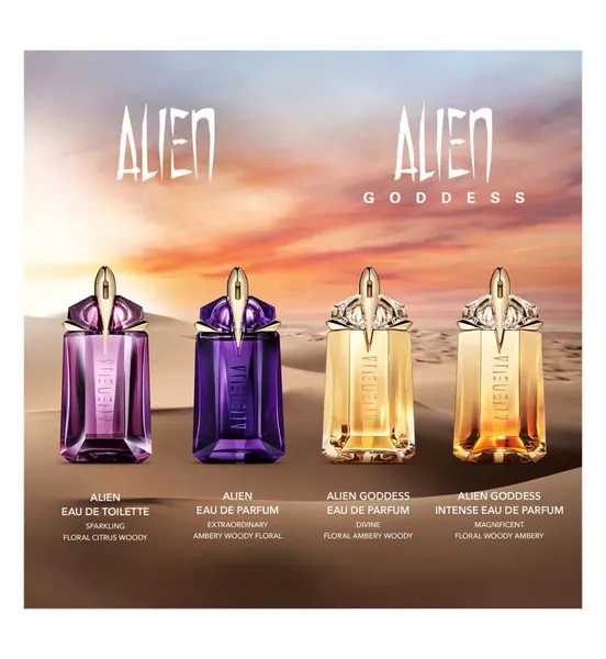 Fuelled by an incandescent light, Alien Goddess’ inner strength knows no bounds; the extraordinary steps into a new dimension. Alien Goddess Eau de Parfum Intense amplifies the magnetic notes of the original scent in a more sensual and bold iteration. With floral, woody and amber notes, the new fragrance for women features warmer nuances, vibrating through the facetted glass of its unique talisman bottle. The olfactory signature and sculptural gold bottle channel Alien Goddess Eau de Parfum Intense into a universal call for all women to embrace the extraordinary!