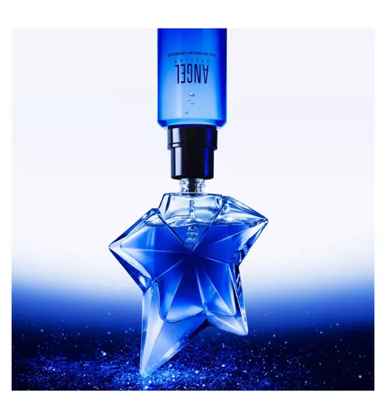 Blazing, captivating, ultra-desirable… In 2025, to embody fantasy glam allure of Angel Stellar Eau de Parfum lumineuse, Mugler’s mythical bottle becomes brighter than ever thanks to an eye-catching cobalt blue star. A dazzling, glamorous take on the signature celestial hue of the original Angel Eau de Parfum bottle.