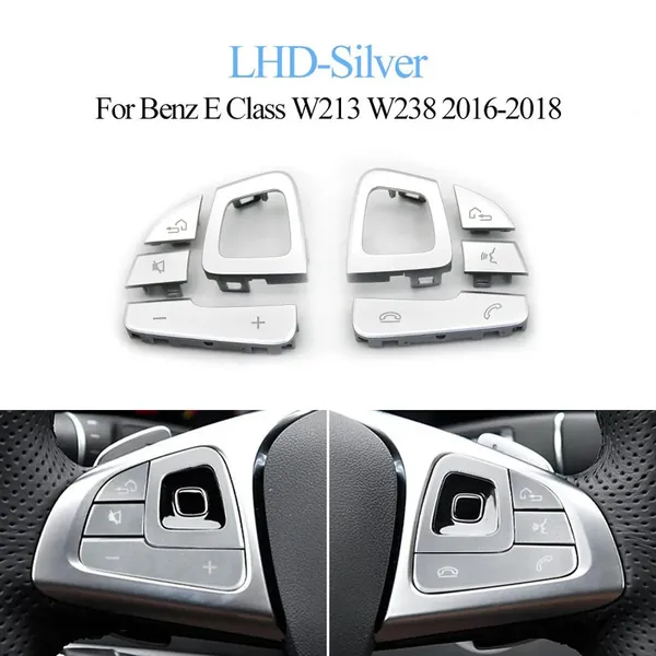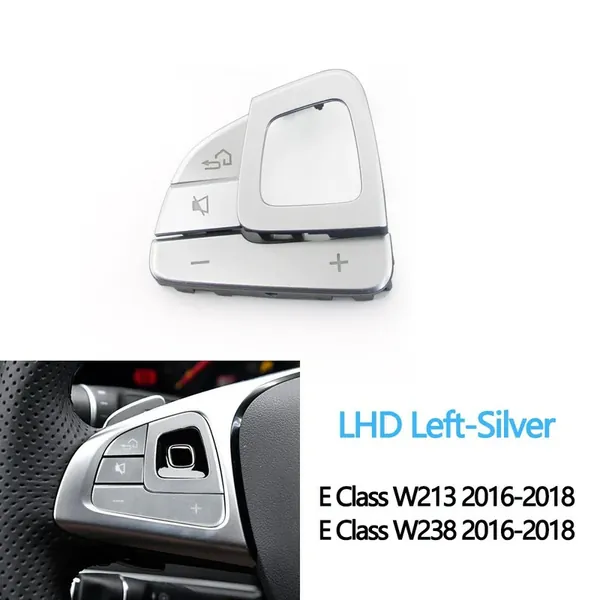 COMPATIBLE WITH MERCEDES BENZ E CLASS W213 2016-2018 E CLASS W238 COUPE CABRIOLET 2016-2018 CAR MULTIFUNCTION STEERING WHEEL LEFT RIGHT VOLUME CONTROL SWITCH BUTTON COVER 0999056400-S-Q8 L LEFT SILVER