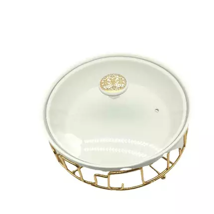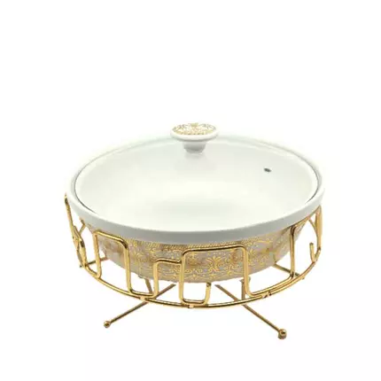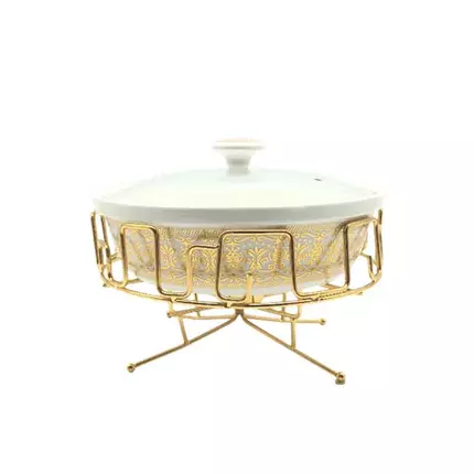 GOOD FOOD HELPER - Scrubbers made of high quality ceramic, which can store the food from a perfect portion of temperature within a few hours. It can keep food warm and refreshing. HEATING: The bottom tray supports 1 oil burner to maintain the ideal operating temperature. To use the fuel tank in the holder and close the lid. HIGH QUALITY MATERIAL - Our scarer bowl is made of high quality ceramic and has a smooth surface. Easy to clean, beautiful design, sturdy and durable, saving space. WIDE APPLICATION RANGE: It is very suitable for holiday parties and special occasions all year round. Widely used in buffets, hotel breakfast and brunch areas, weddings, parties, banquets and events. Specification Brand Nadstar Color Gold & White Style Modern Recommended Uses For Product Home Kitchen Wedding and Other Events Occasion Home and Events Shape Round Oval Product Care Instructions Hand Wash Only Age Range (Description) Adult Reusability Reusable