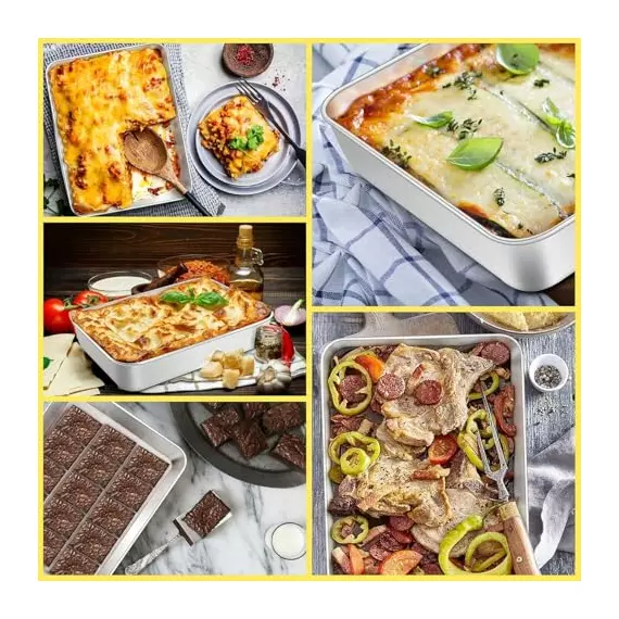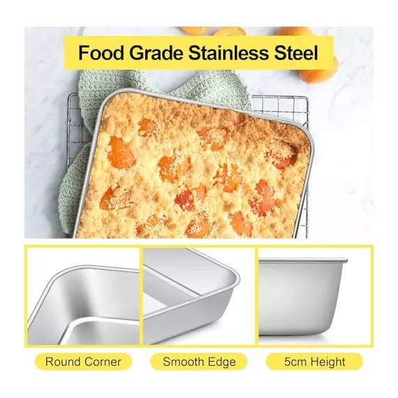 Nadstar8 Aluminium Square Tray 9.5" Cake Moulds, Rectangle Baking Tray, Deep Oven Pan for Lasagna, Brownie, Pizza, Heavy Duty, Anti-Rust, Easy Clean NO13