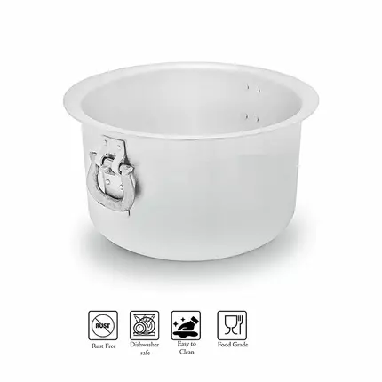 Nadstar8 Aluminium Sufuria 430L with Lid & Handle 57KG Gauge 5G 5.40MM Aluminium Tapela, Patila with Handles Commercial Tope No.80 Aluminum Tope utensil is made in the traditional way to bring something extra-beautiful to your dinner table and put the perfect finishing touch on an Indian meal. Easy to clean and wash, they have very exotic color. Highly durable and made of fine quality material makes this set long-lasting. Aluminum Tapela is Ideal for cooking on gas stove and serving the food to guests. Cleaning made easy! Smooth finish resists stains and maintains its shine. A breeze to clean, leaving you with more time to savor your creations. Heavy Gauge 100% Food Grade aluminium material. Indulge in perfectly cooked meals every time! Thick-bottomed design ensures consistent heat distribution. No more uneven cooking! Size 80 Outer Diameter 43 Inches Inner Diameter 40 Inches HEIGHT 21 Inches Capacity (Liters) 430 Gauge 5 G , 5.40 MM