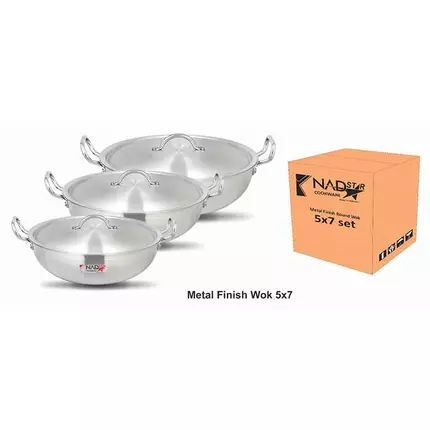 WOK ALUMINUM – It’s the ideal baking surface. Our ‘Safe-Seal’ anodizing process creates a safer, stronger cooking pot. A durable, non-reactive finish that cooks a wider variety of recipes, including citrus-based and savory recipes. Freezer safe. HEATS & COOLS QUICKER – By reflecting heat, rather than absorbing heat, sonex cooking pot reach cooking temperatures faster. Even heating allows for the best possible rise. NO EXTRA METALS OR CHEMICAL COATINGS – Anodizing is not a coating. It is an environmentally-friendly process that contains no chemical additives, dyes, PTFE’s or PFOA’s. Nothing that can transfer, peel, flake or rust into your cooking 3 Pieces in a set 18.4 KG (All Set) Body: Aluminum Handle: Nadstar8 Wok Karai Set 3Pcs Set With Lid & Handle Metal Finish Wok Jumbo Round WJ31/36 from Nidadanish. Get it delivered at your doorstep.