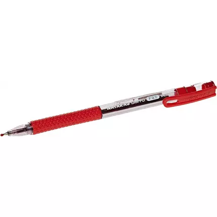 - Classic pen with a transparent body and grip in the color of the ink.