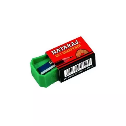 Nataraj 621 Sharpener Scientifically angled blade with anti rust coating Contoured body for a firm grip Nataraj - Sharpener Handy and sleek look with high quality durable blades Guarantees smooth and effortless sharpening of graphite and color pencils.
