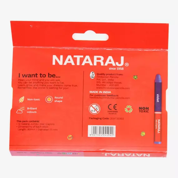 Crayons have wide grip that help in hand co-ordination and allow for bigger and bolder strokes. Nataraj Wax Crayons in 90mm size offer a diverse and vibrant coloring experience. This set includes 12 different colors, providing an extensive range of options for artistic expression and creativity .The crayons are made with high-quality wax, ensuring smooth and effortless coloring. Each crayon features a sturdy 90mm length, which offers a comfortable grip and allows for precise control while drawing or coloring.