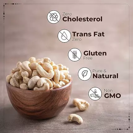 Energy and Vitality: The rich combination of protein and healthy fats in cashews provides a sustainable energy boost. Whether you're on the go or need a midday pick-me-up, these nuts are your perfect companion.