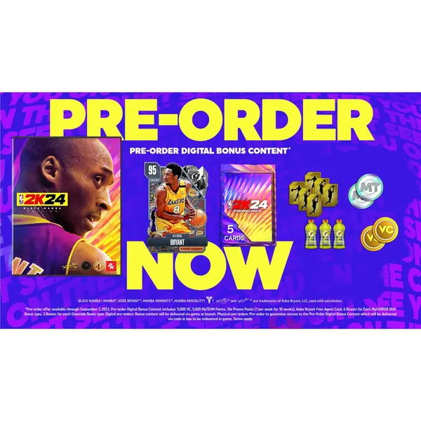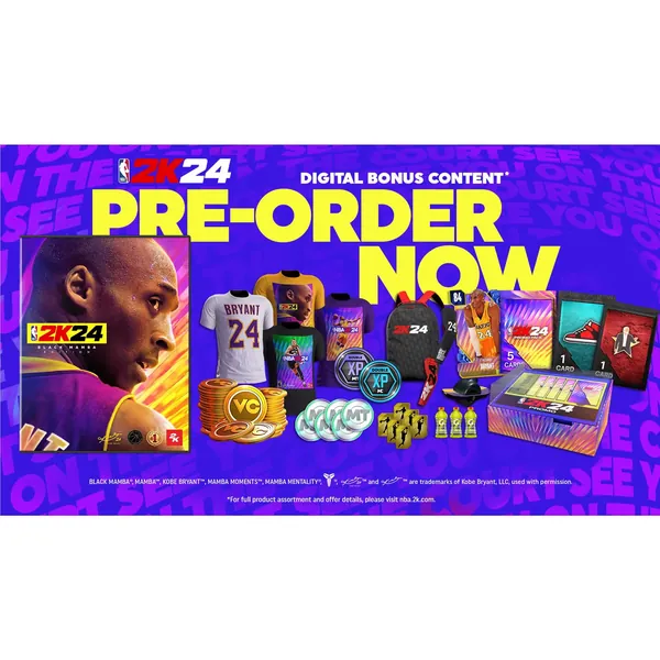 Grab your squad and experience the past, present, and future of hoops culture in NBA 2K24. Enjoy loads of pure, authentic action and limitless personalized MyPLAYER options in MyCAREER. Collect an impressive array of legends and build your perfect lineup in MyTEAM. Feel more responsive gameplay and polished visuals while playing with your favorite NBA and WNBA teams in PLAY NOW.