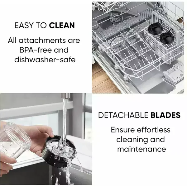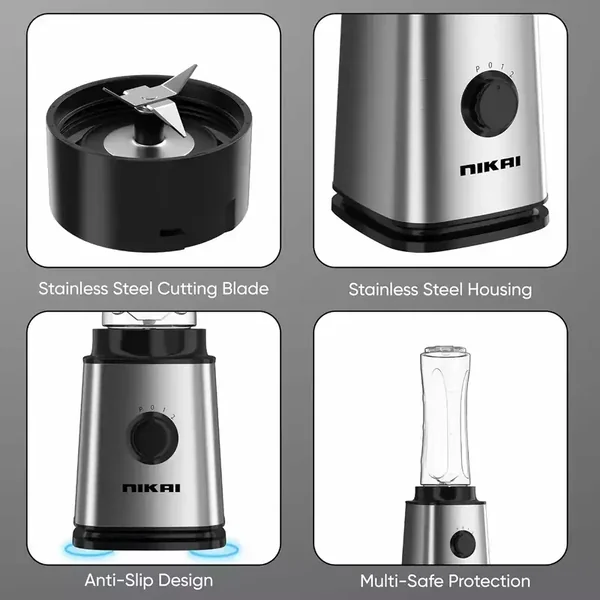 - 4 Stainless Steel Blades & Housing: Durable, sharp blades and a stylish, easy-clean stainless steel housing for efficient blending.