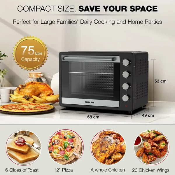 - Spacious 75-Liter Capacity for large meals and batch cooking.