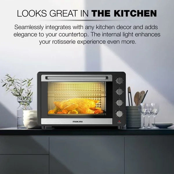 The Nikai NT75RCZ is a high-capacity 75-liter electric oven designed for versatile cooking. Combining powerful 2200W heating with practical features like a rotisserie and programmable timer, it offers reliable performance for a wide range of culinary tasks.