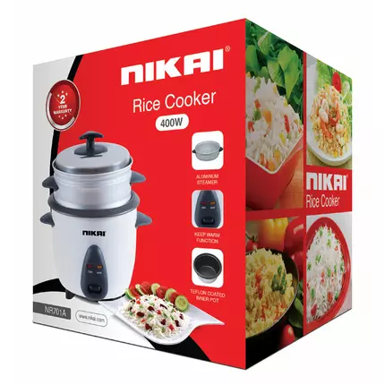 Nikai Rice Cooker 1L 400W Detachable Power Cord Non Stick Teflon Top Steamer Keep Warm Function NR701A