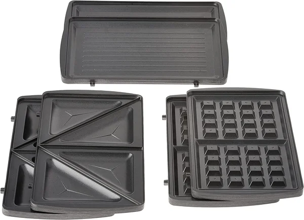 - Plates: 3 detachable plates (Grill, Sandwich, Waffle)