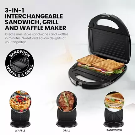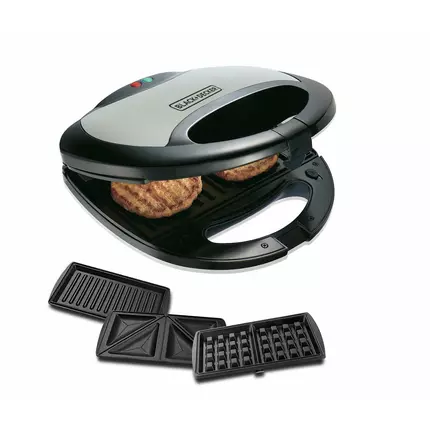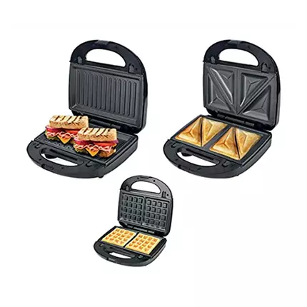 3 Detachable Plates: Includes plates for grilling, making sandwiches, and waffles.