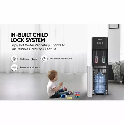 Nikai Water Dispenser 3 Tap/Faucet Bottom Loading Water Dispenser Instant Hot/Cold/Room Temperature Water Dispenser Child Safety Lock, Stainless Steel Reservoir, Ideal for Home and Office Silver/Black