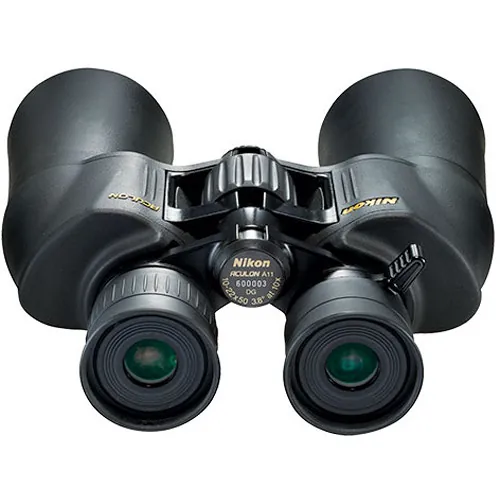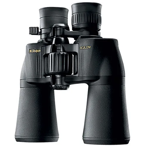 Nikon's black 10-22x50 Aculon A211 Binoculars are ideal for hunters, birders, and avid outdoor enthusiasts who require a range of magnifications for wide-field and detailed observations in all light conditions.
