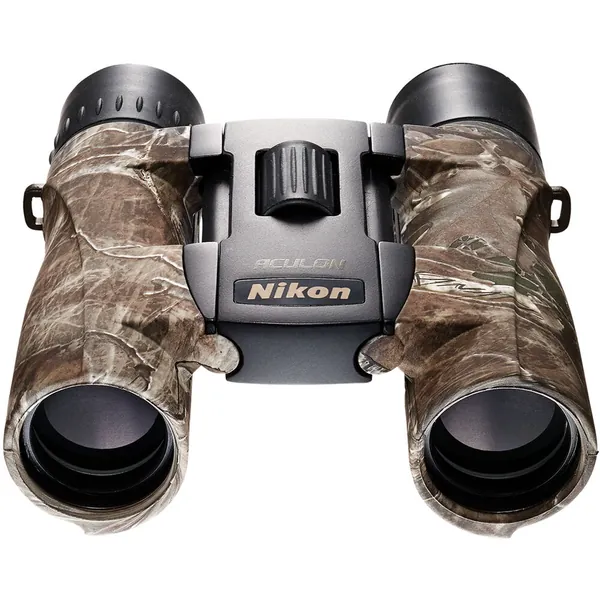 The 10x25 Aculon A30 Binoculars from Nikon, in TrueTimber's Kanati camouflage pattern, are designed for mid-range observations, with an antireflection multicoated lens system and roof prism optical path designed to work together and transmit clear images with enhanced contrast and accurate color representation. Nikon built the A30 with their ecologically friendly Eco-Glass, which is manufactured without lead or arsenic to be better for the environment. This version of the Aculon is ideal for sporting events, general nature observation, and sightseeing around town or around the world.