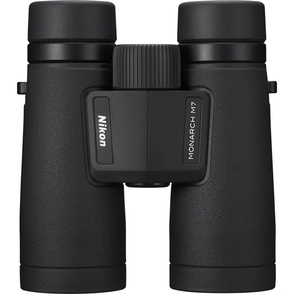 Boasting a wide viewing angle that presents an immersive viewing experience, Nikon's black 10x42 Monarch M7 Binoculars have improved design features compared to previous iterations, with the same focus on comfort and performance the line is known for. Featuring extra-low dispersion glass elements with anti-reflection fully multicoated optics and highly reflective dielectric-coated, phase-corrected roof prisms, complemented by exterior lens coatings that repel water and oil, the Monarch M7 produces bright and clear high-contrast images with true-to-life color and minimal color fringing.