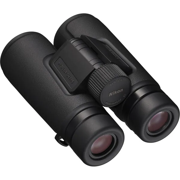 Improving on their Monarch 5 design, Nikon's 8x42 Monarch M5 Binoculars present a wider field of view for a more immersive observational experience, while maintaining the same focus on comfort and performance the Monarch line is known for. Extra-low dispersion glass, anti-reflection multicoating, and dielectric-coated, phase-corrected roof prisms deliver bright, high-contrast images with true-to-life color and minimal color fringing.