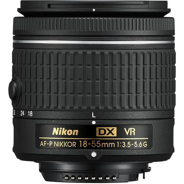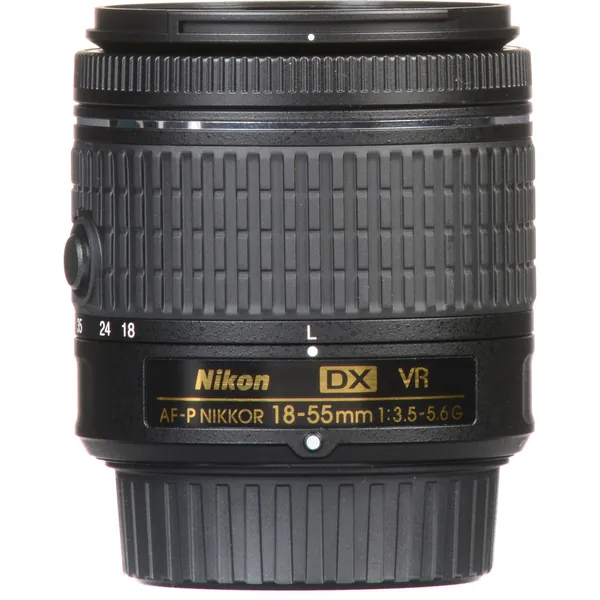 Updating the staple DX-format standard zoom, the AF-P DX NIKKOR 18-55mm f/3.5-5.6G VR from Nikon offers a 27-82.5mm equivalent focal length range as well as an especially sleek form factor. Two aspherical elements are featured in the optical design, which help to control spherical aberrations and distortion in order to realize high sharpness and accurate rendering. A Super Integrated Coating is also used to minimize flare and ghosting for greater contrast and color accuracy. Suiting both photo and video applications, the AF-P designation indicates the use of a pulse stepping motor that offers notably quiet, fast, and precise autofocus performance. Additionally, Vibration Reduction image stabilization compensates for up to four stops of camera shake for sharper handheld shooting.