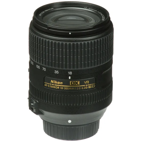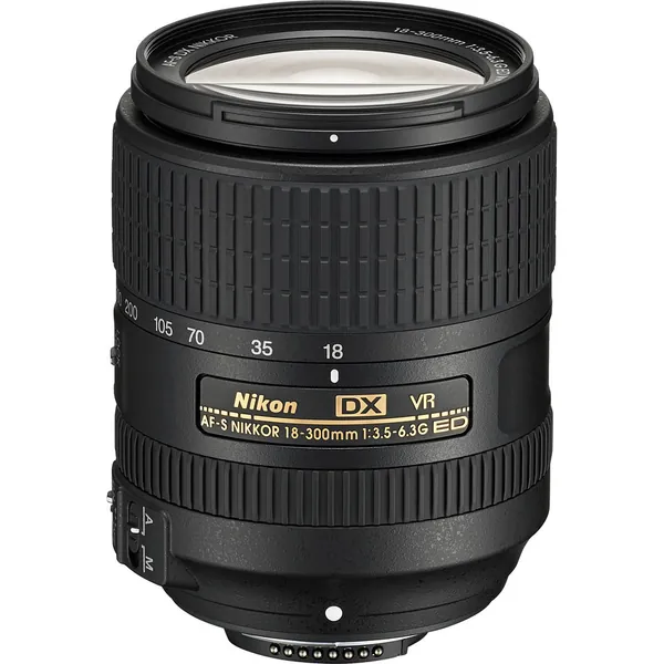 Spanning wide-angle to super telephoto, the AF-S DX NIKKOR 18-300mm f/3.5-6.3G ED VR from Nikon is an ideal single-lens solution for photographing in a wide variety of situations. Designed for DX-format cameras, this 27-450mm equivalent zoom features an advanced optical design comprising both aspherical and extra-low dispersion glasses, which help to reduce aberrations and distortions throughout the zoom range for notable clarity and sharpness. A Super Integrated Coating has also been applied to suppress flare and ghosting when working in backlit or harsh lighting conditions. Benefitting the optics is a four stop-effective VR image stabilization system, which minimizes the appearance of camera shake in order to produce sharper handheld imagery. Additionally, a Silent Wave Motor affords quick, quiet autofocus performance.