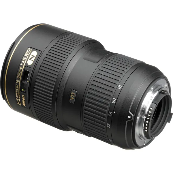 Covering a versatile array of wide-angle focal lengths, the AF-S NIKKOR 16-35mm f/4G ED VR from Nikon is a flexible zoom ideal for landscape, cityscape, and interior photography. Its constant f/4 maximum aperture maintains consistent illumination throughout the zoom range and suits working in a variety of lighting conditions. The optical design contains three aspherical elements and two extra-low dispersion elements, which greatly reduce distortion and aberrations for a high degree of sharpness, clarity, and accurate rendering. A Nano Crystal Coat has also been applied to control flare and ghosting for greater contrast and color accuracy in harsh lighting and backlit conditions. Additionally, this lens also sports a Silent Wave Motor for fast and accurate autofocus along with VR II image stabilization to minimize the appearance of camera shake by 2.5 stops.