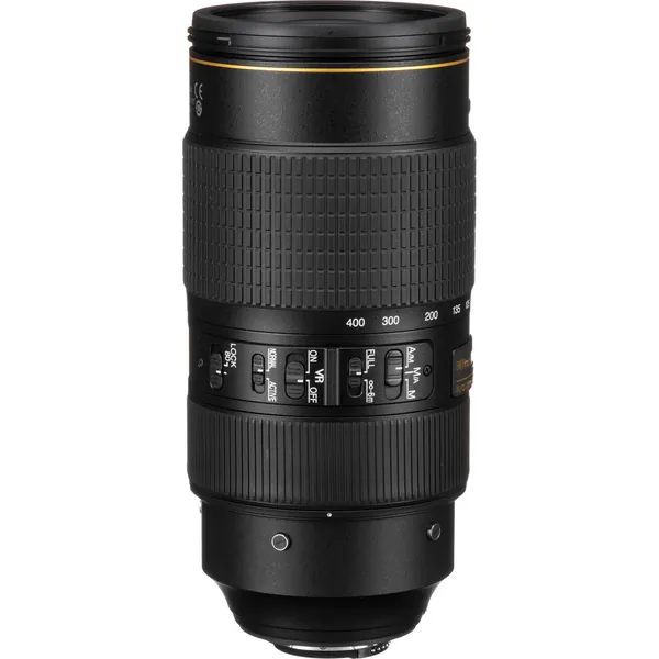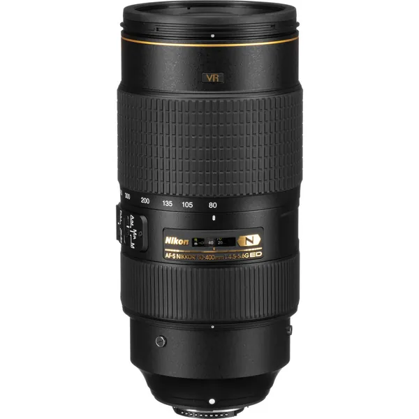 Summing up several telephotos in one convenient zoom, the AF-S NIKKOR 80-400mm f/4.5-5.6G ED VR from Nikon is a versatile lens covering portrait-length to super-telephoto focal lengths. Characterized by an advanced optical design, this lens uses one super extra-low dispersion element and four extra-low dispersion elements to noticeably reduce chromatic aberrations and color fringing throughout the zoom range for improved clarity. Both Nano Crystal and Super Integrated Coatings have also been applied to control flare and ghosting in order to increase contrast and color accuracy in bright and backlit conditions. A Silent Wave Motor AF system produces fast, near-silent focusing performance that suits both stills shooting and movie recording, which can instantly be manually overridden by simply turning the manual focus ring. Further contributing to photographing in fast-paced situations and difficult lighting, Vibration Reduction image stabilization compensates for the effects of camera shake by up to four shutter speed stops.