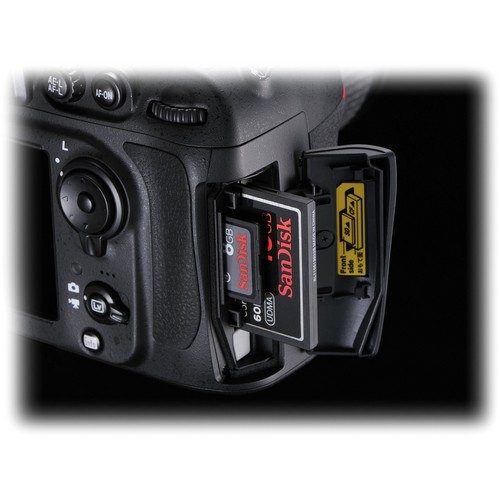- Storage: Dual memory card slots (CompactFlash and SD)